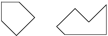 Considerando um único objeto, este convexo, ou seja, em qualquer posição que se trace um segmento de reta haverá interseção em no máximo dois pontos distintos do objeto. Caso contrário, havendo interseção em mais de dois pontos, o objeto é chamado de não convexo. Ou ainda, um segmento de reta estará sempre dentro do objeto, o que não acontece com o não convexo.