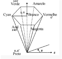 O espaço de cor HSV é uma forma natural e intuitiva para formação das cores, assim como o CIE-LAB e CIE-LUV. A transformação do RGB para o HSV não é linear, mas tem a vantagem de que o processo de reversão e converão ao RGB ser facilmente realizado.